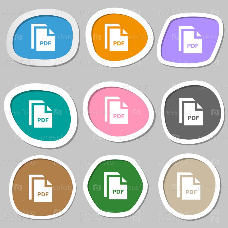 Файл PDF значок символы. разноцветные бумажные наклейки. вектор