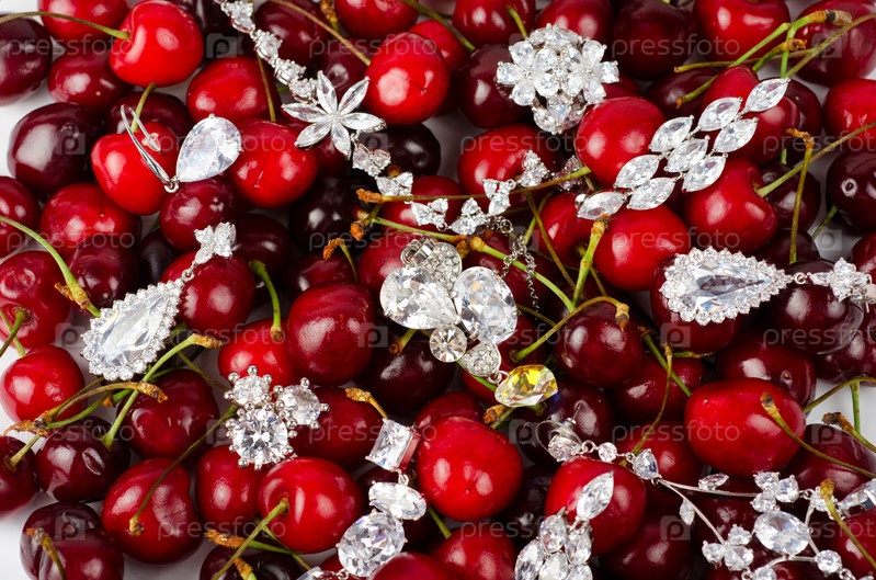Украшения на фоне спелых вишен