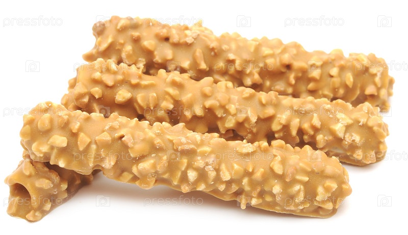 Вафли с орехами на белом фоне