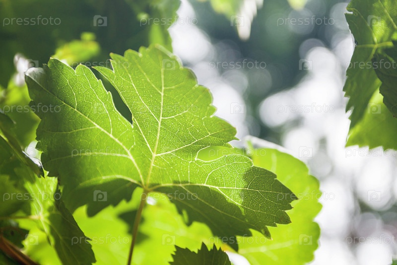 Зеленый прозрачный виноградный лист