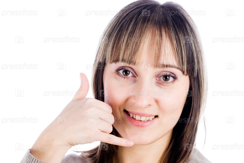 Молодая женщина показывает жестом "позвони мне"