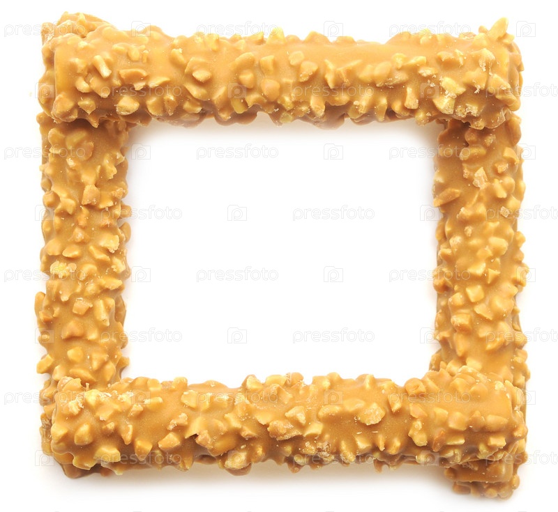 Квадрат из вафель с орехами на белом фоне