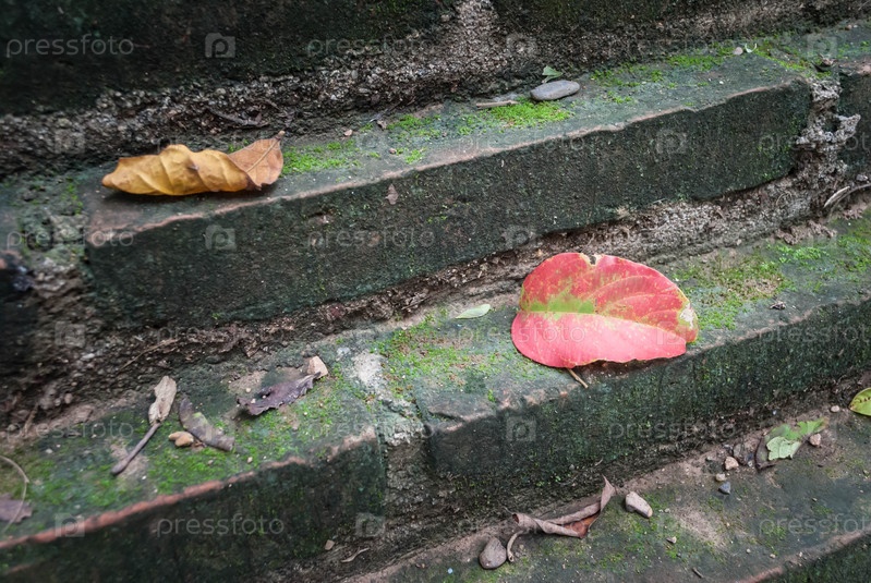 Красные листья на старой лестнице