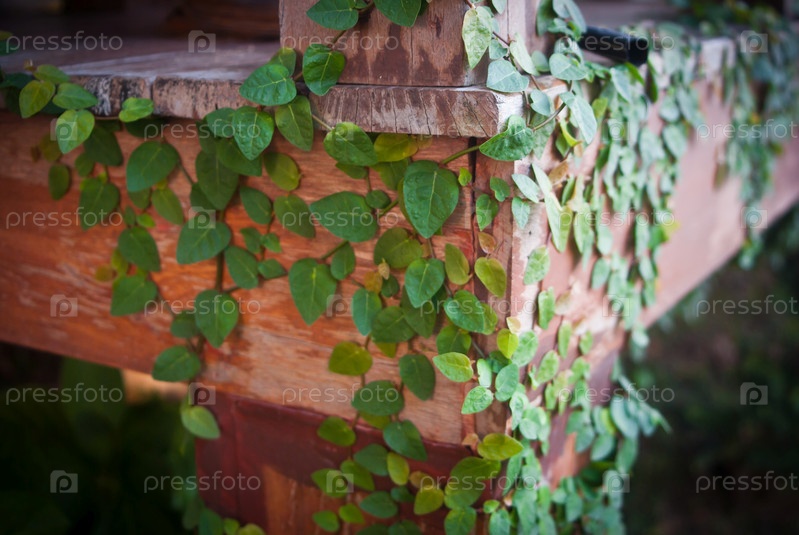 Зеленые растения-вьюнок на дереве