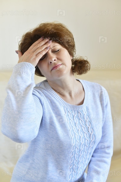 Женщина держит руки на голову, депрессии, боли, мигрени