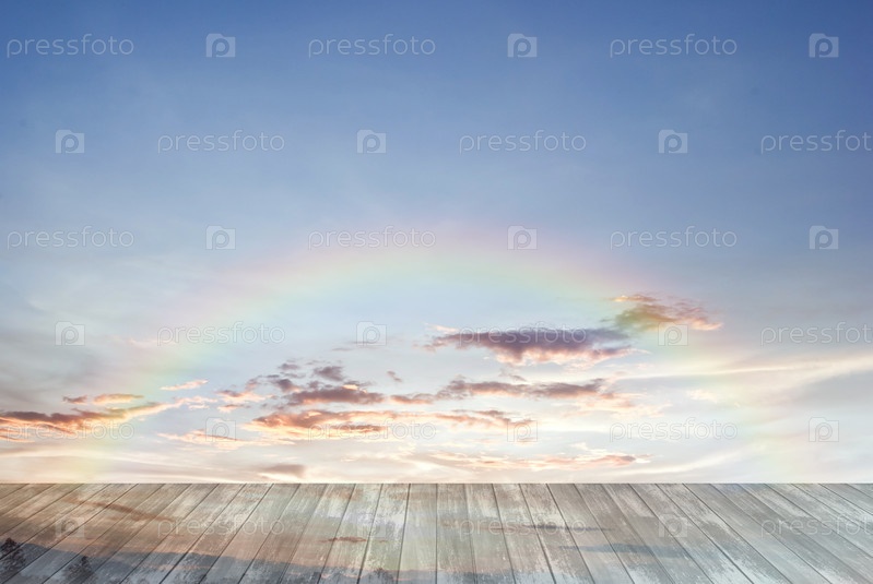 Старые деревянные текстуры и Радуга на фоне голубого неба