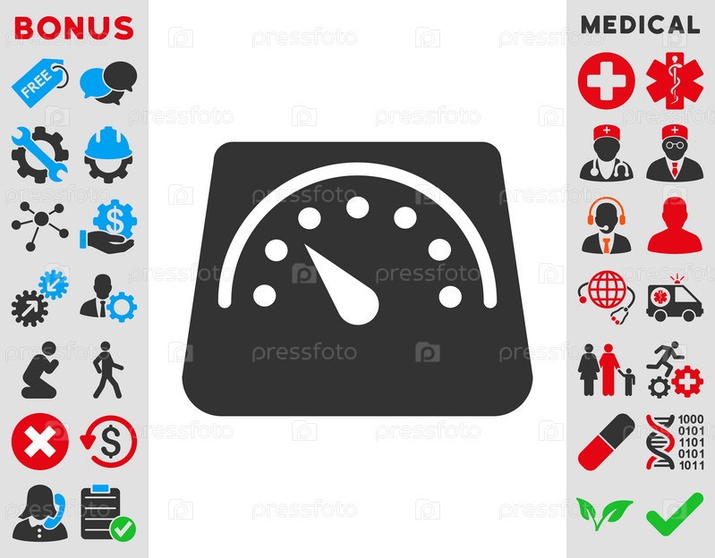 Вес счетчика иллюстрации значок. Стиль является биколор плоский символ, голубой и серый цвета, закругленные углы, белый фон