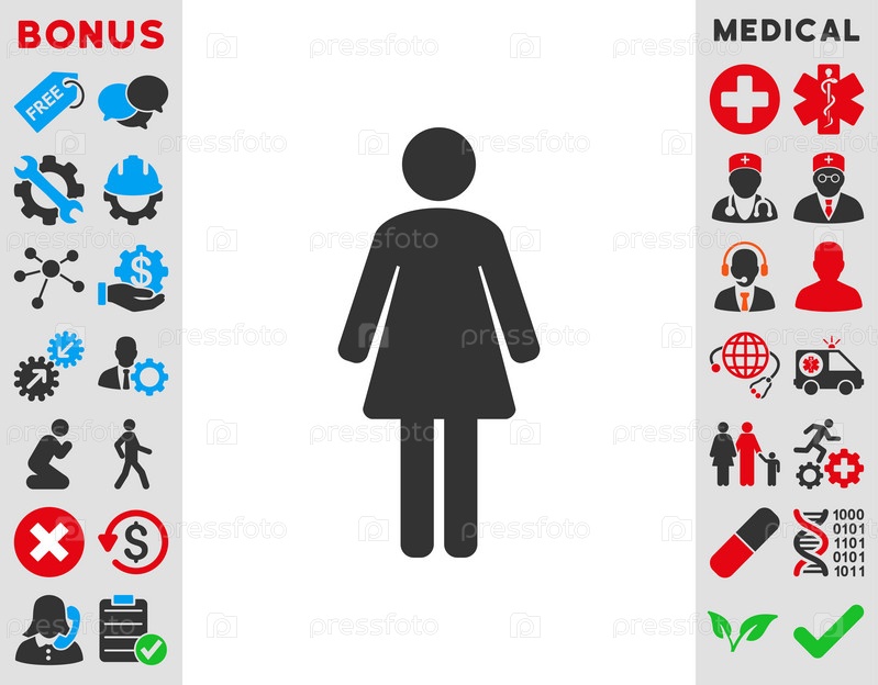 Иконка Женщина иллюстрации. Стиль является биколор плоский символ, голубой и серый цвета, закругленные углы, белый фон