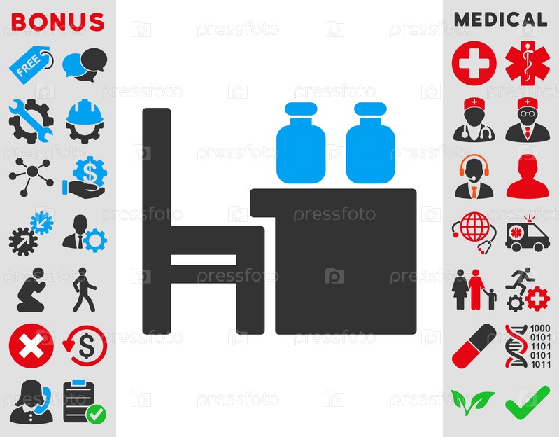 Аптекарь значок таблицы Иллюстрация. Стиль является биколор плоский символ, голубой и серый цвета, закругленные углы, белый фон
