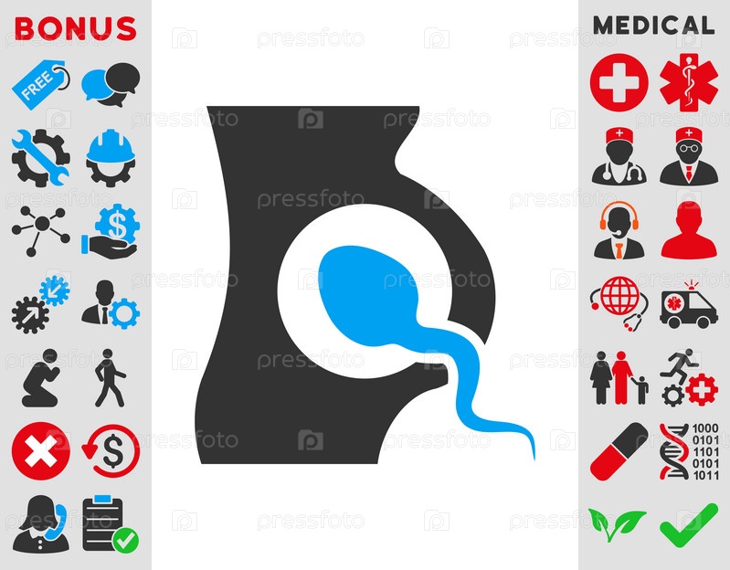 Искусственное осеменение иллюстрации значок. Стиль является биколор плоский символ, голубой и серый цвета, закругленные углы, белый фон