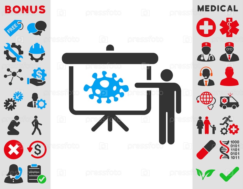 Бактерии лекция иллюстрации значок. Стиль является биколор плоский символ, голубой и серый цвета, закругленные углы, белый фон