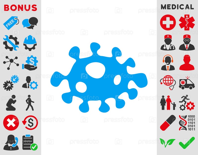 Бактерии иллюстрации значок. Стиль является биколор плоский символ, голубой и серый цвета, закругленные углы, белый фон