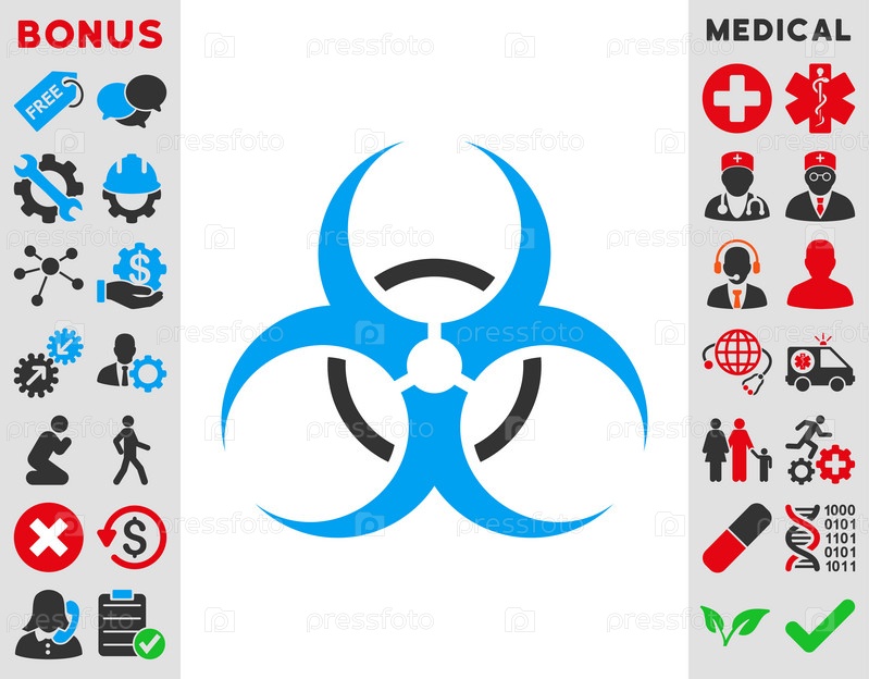 Био опасности иллюстрации значок. Стиль является биколор плоский символ, голубой и серый цвета, закругленные углы, белый фон