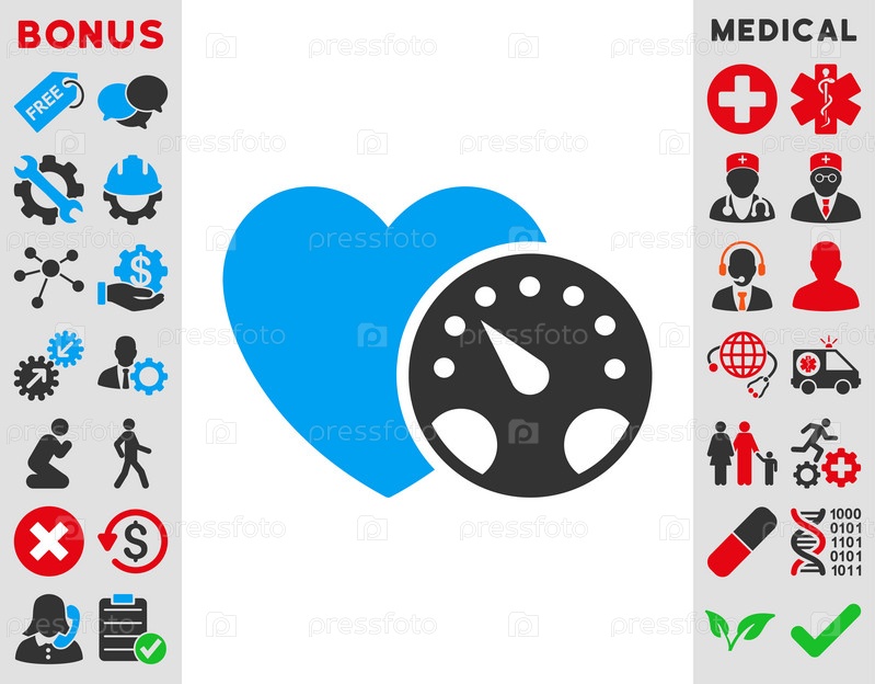 Метр кровяного давления иллюстрации значок. Стиль является биколор плоский символ, голубой и серый цвета, закругленные углы, белый фон