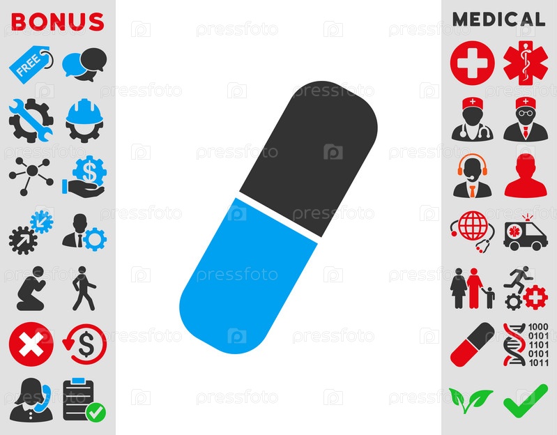 Капсула иллюстрации значок. Стиль является биколор плоский символ, голубой и серый цвета, закругленные углы, белый фон