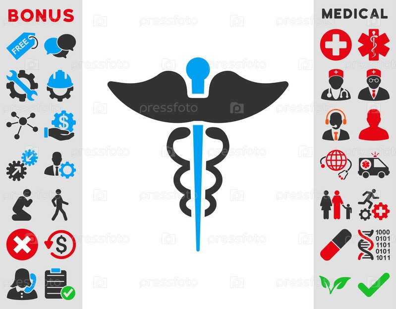 Кадуцей иллюстрации значок. Стиль является биколор плоский символ, голубой и серый цвета, закругленные углы, белый фон