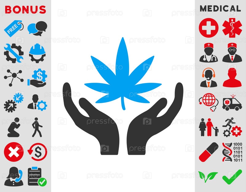 Каннабис уход иллюстрации значок. Стиль является биколор плоский символ, голубой и серый цвета, закругленные углы, белый фон