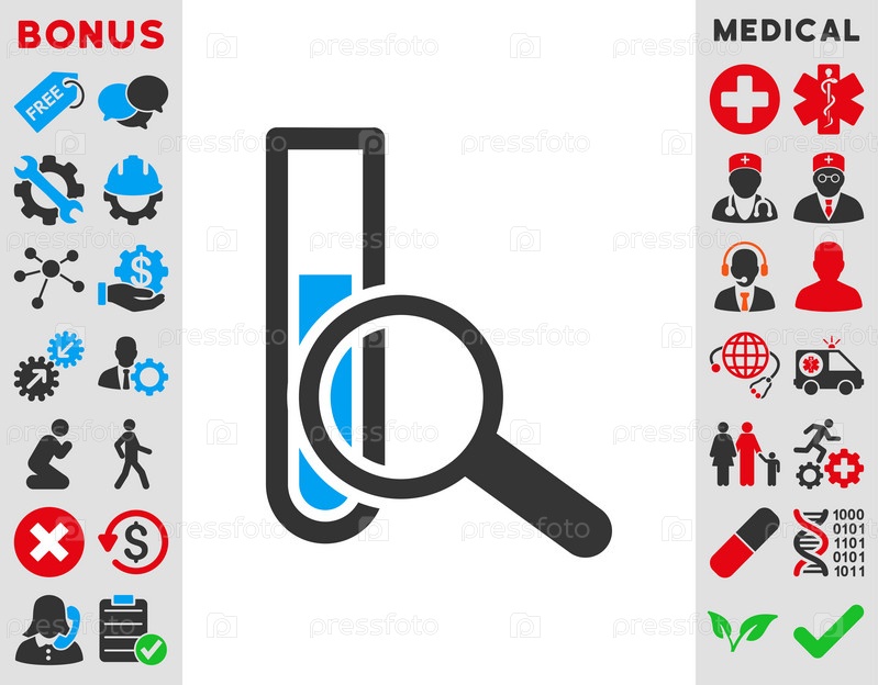 Химические испытания иллюстрации значок. Стиль является биколор плоский символ, голубой и серый цвета, закругленные углы, белый фон