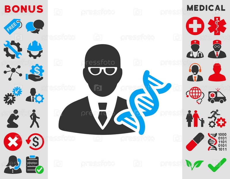 Генетической инженер иллюстрации значок. Стиль является биколор плоский символ, голубой и серый цвета, закругленные углы, белый фон