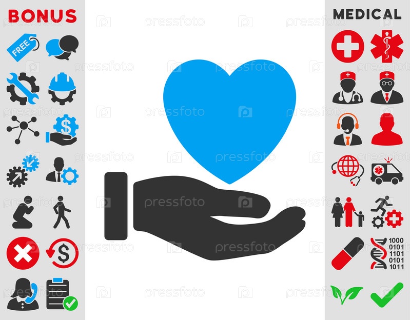 Сердце благотворительности иллюстрации значок. Стиль является биколор плоский символ, голубой и серый цвета, закругленные углы, белый фон