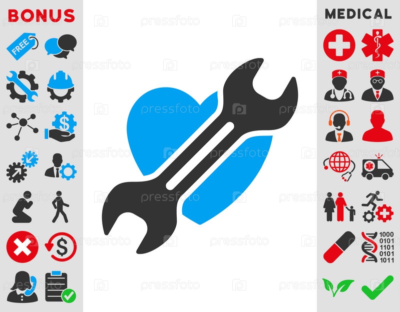 Сердце хирургии иллюстрации значок. Стиль является биколор плоский символ, голубой и серый цвета, закругленные углы, белый фон