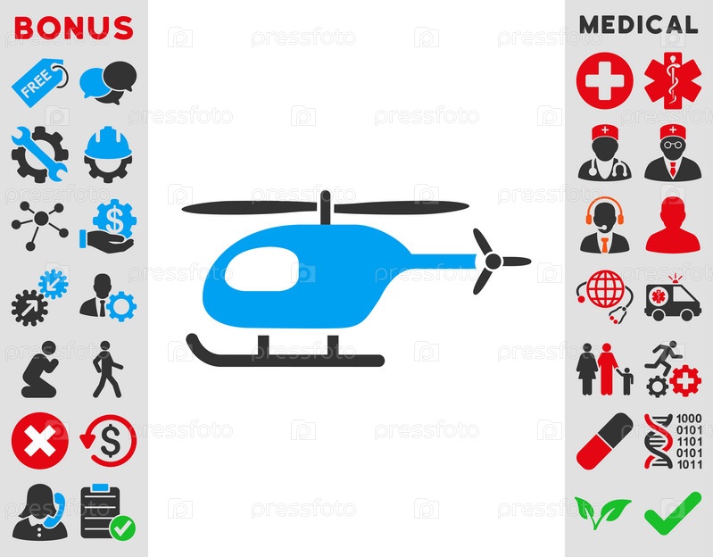 Вертолет иллюстрации значок. Стиль является биколор плоский символ, голубой и серый цвета, закругленные углы, белый фон