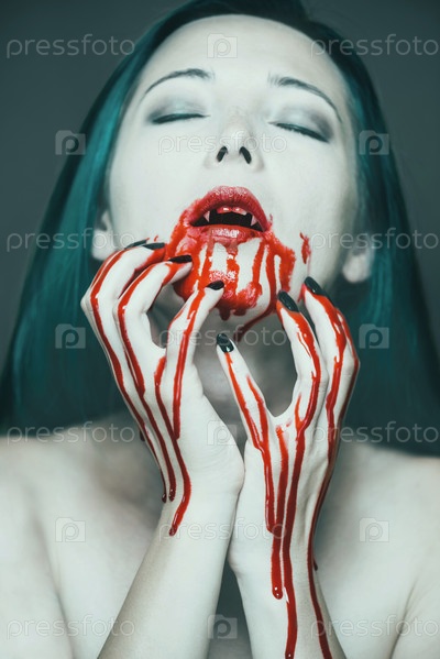 Страшно вампир женщина в крови