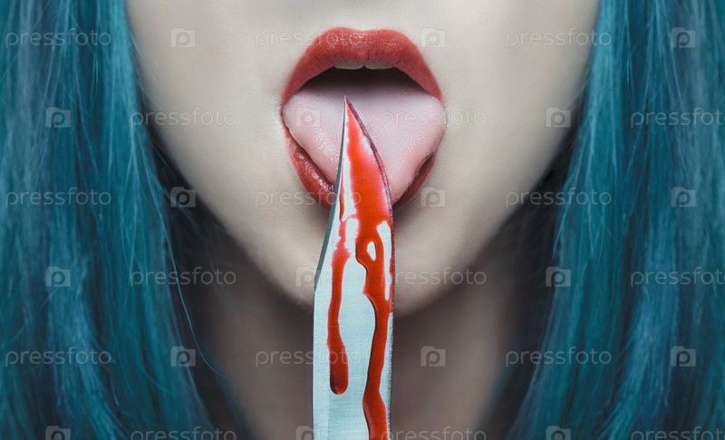 Ужас женщина, облизывая нож