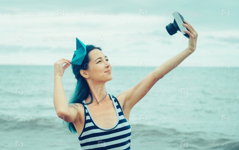 Матрос девушка делает Автопортрет