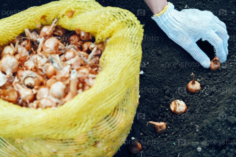 Садовник посадки саженцев лук