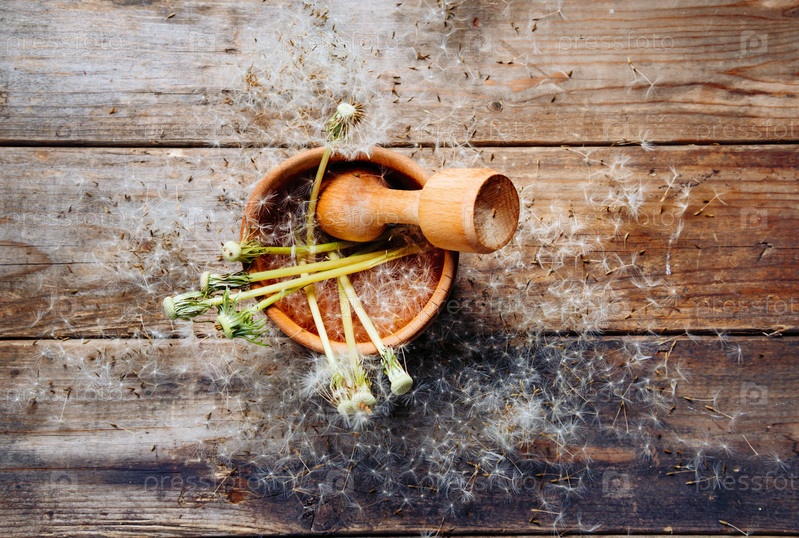 Белый одуванчик в ступке