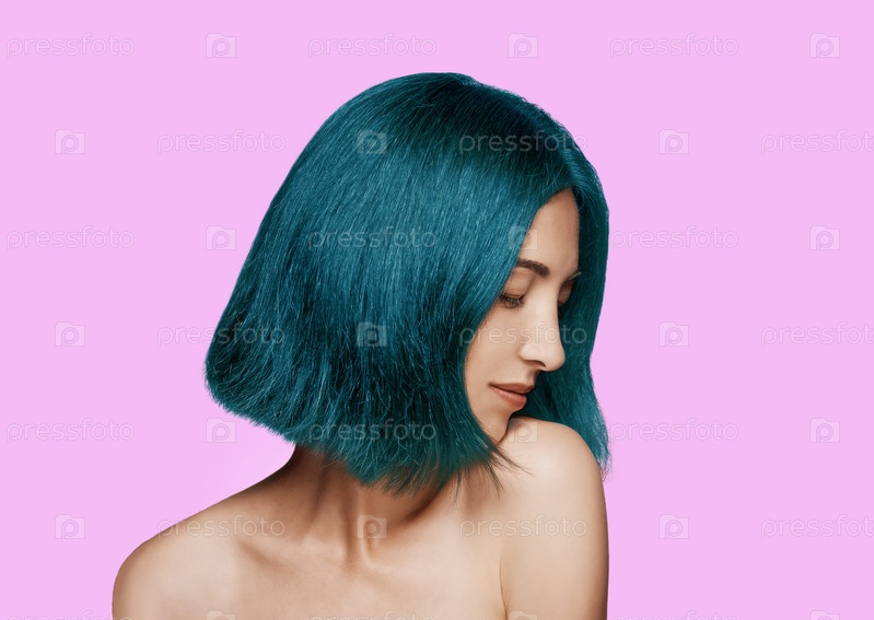 Женщина с голубой прическа
