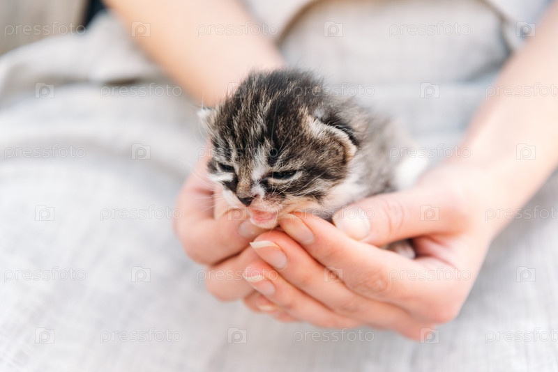 Милый котенок в человеческих руках