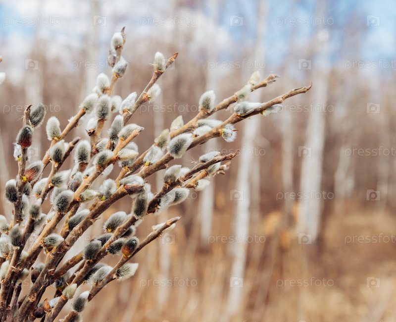 Весной фон ветоки вербы