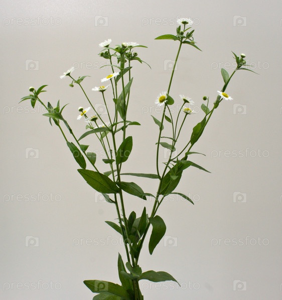 Ветка цветущего растения на сером