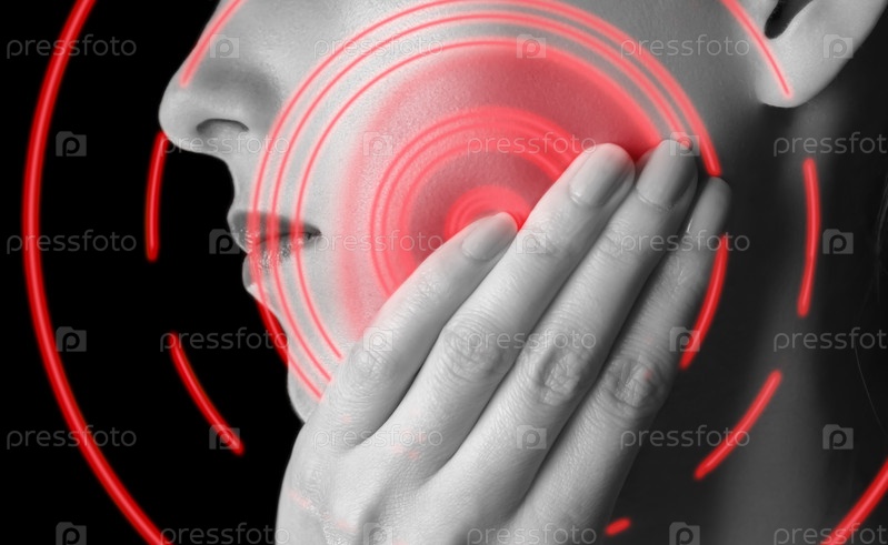 Зубная боль, монохромное изображение, боль в области красного цвета