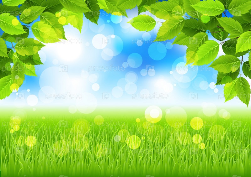 Небо и лужайка в рамке из листьев