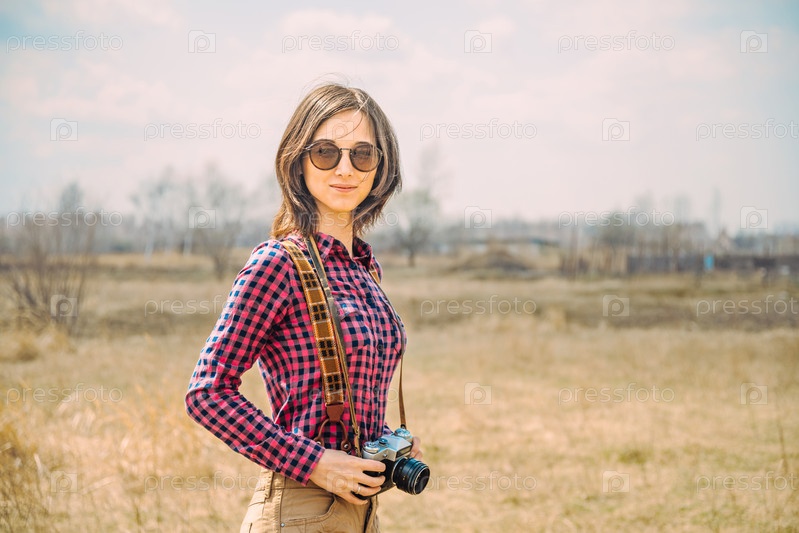 Девочка с винтажные фото камеры