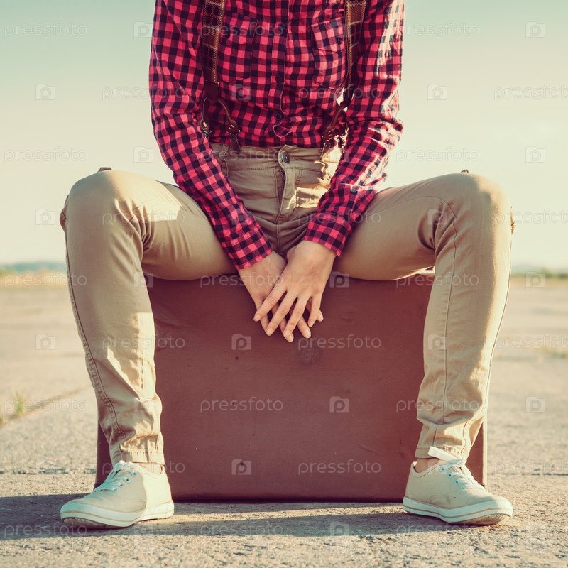 Девочка сидит на чемодан