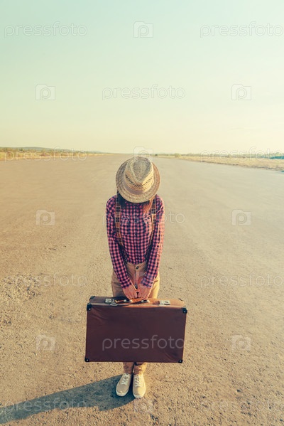 Путешественник женщина стоит на дороге