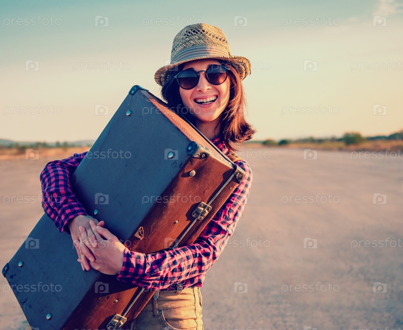 Счастливым путешественника с чемоданом