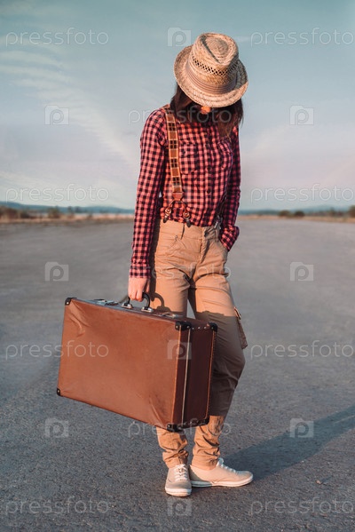 Девочка путешественник с чемоданом