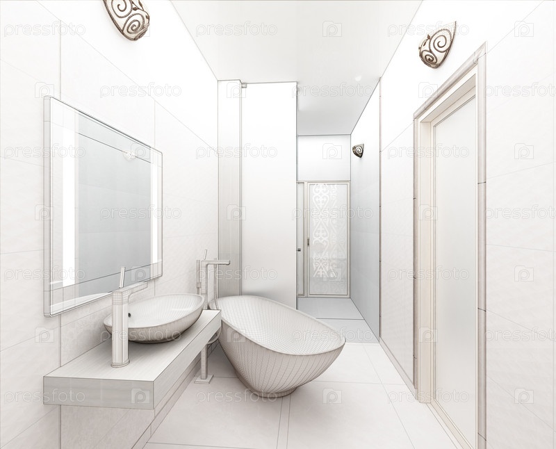 Рендеринг 3D-дизайн интерьера современной ванной