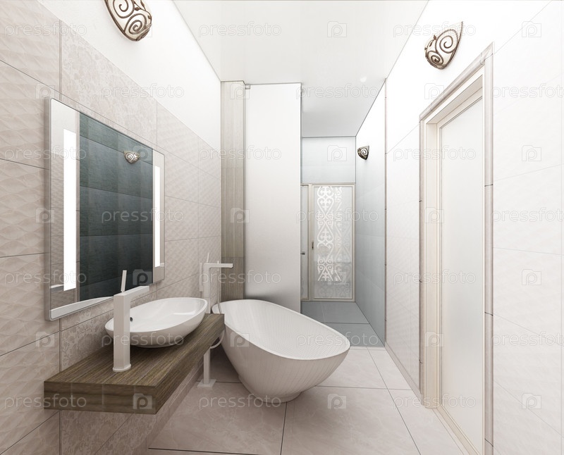 Рендеринг 3D-дизайн интерьера современной ванной
