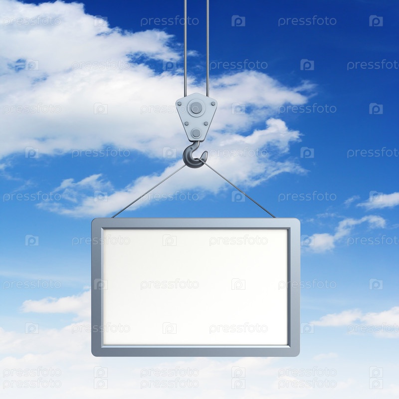 Пустой рекламный щит на крючке на фоне неба