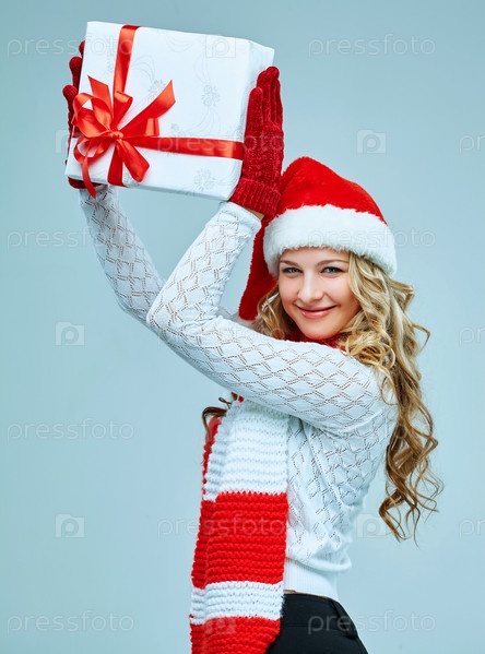 Красивая молодая женщина с Рождественским подарком