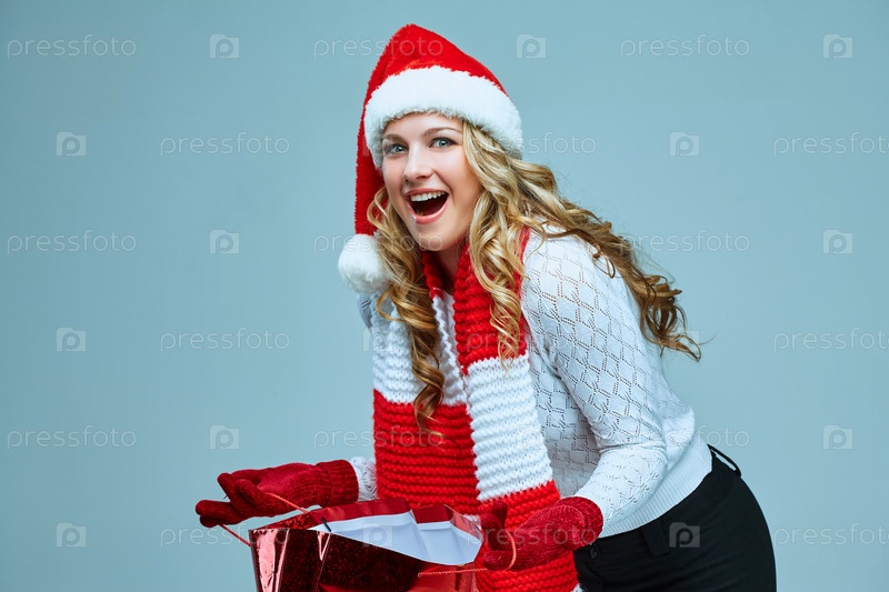 Красивая молодая женщина с Рождественским подарком