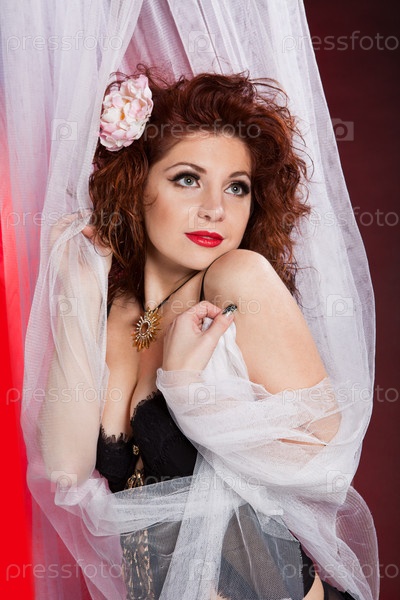 Портрет молодой девушки на красном фоне