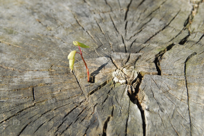 Молодой росток растет в пне