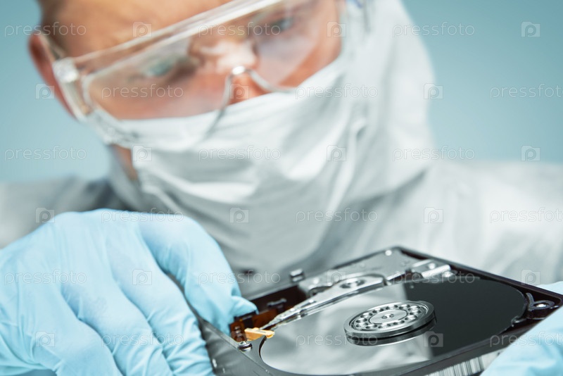 Ученый изучает жесткий диск
